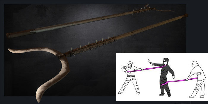La Sasumata se conoce tambien como "atrapa hombres" debido a su proposito original, que era el de detener sin causar daños significativos. Ver video, ver video2
