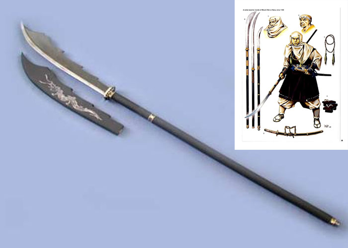 La naginata es un arma muy popular entre los monjes guerreros y las samurái-ko. Es un arma considerado honorable. Es mas ligera que el Bisento y mas larga que el Nagamaki. Ver video, Ver video2
